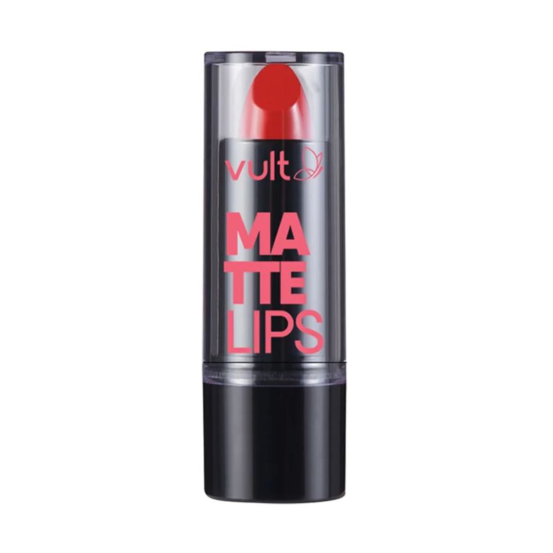 O Batom Vult Matte Lips com acabamento matte aveludado. Sua textura confortável tem alta pigmentação e alta cobertura duradoura. Apresenta fórmula enriquecida com Vitamina E, Pantenol e Óleo de Rícino, ativos hidratantes que deixam o efeito matte confortável nos lábios. Sua composição apresenta Tecnologia Real Color: alta pigmentação e cores fiéis da embalagem à sua pele, além, é claro, de ser vegano e cruelty free.