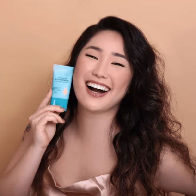 A Base de Alta Cobertura possui acabamento mate com toque suave e aveludado, oilfree, com alta duração, resistente à água e HD. Contém vitamina E e garante uma pele perfeita ‘sem defeitos’.