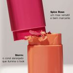 E, é claro que a versatilidade desse produto combina com diversas ocasiões. Spice Rose é um tom de rosa marcante que não pode faltar na sua coleção de maquiagem, seja para destacar os lábios ou as maçãs do rosto.