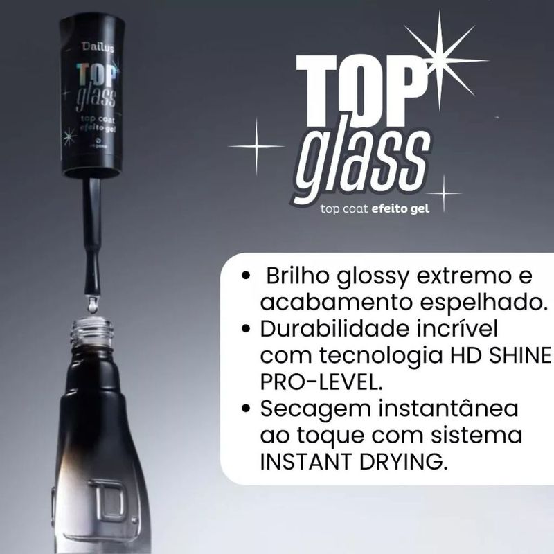 🤩 Esmalte Dailus Top Coat Glass 8ml Efeito Gel 🤩