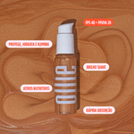 Nosso Glow Corporal é um óleo iluminador corporal, com FPS 40 e FPUVA 20 que além de proteger a pele dos raios solares, hidrata, deixando-a com aspecto saudável, iluminado e com viço.