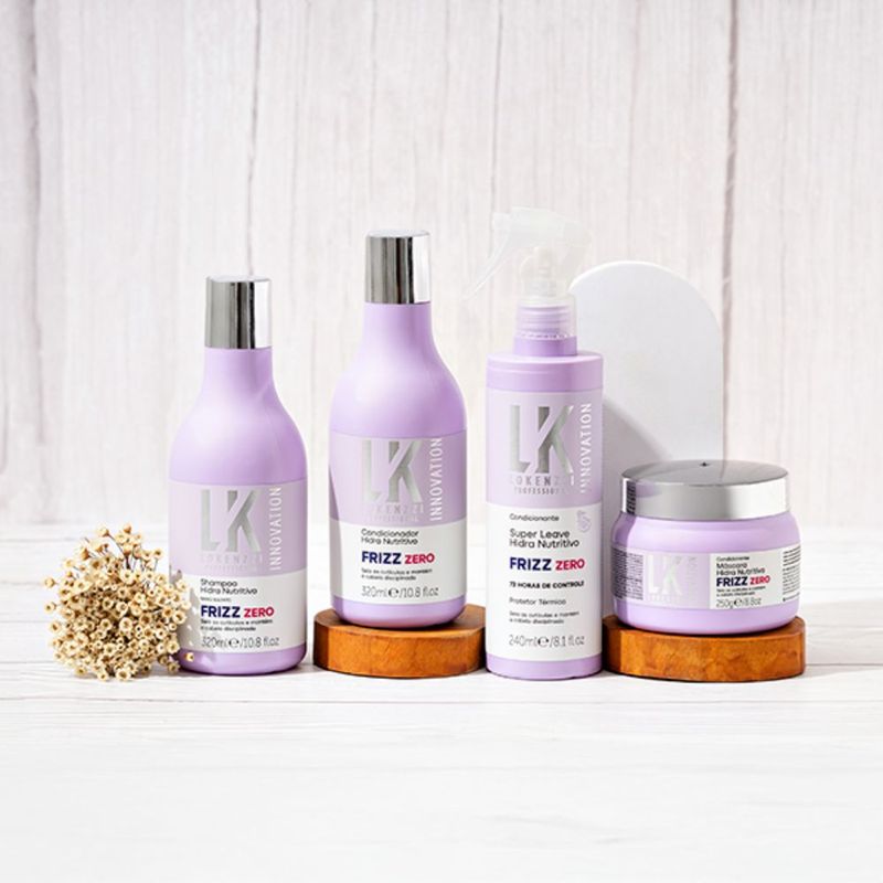 O Super Leave Lokenzzi Frizz Zero foi desenvolvida especialmente para cabelos agredidos por processo químico, como luzes ou progressiva. Esses agentes fazem os cabelos ficarem mais rebeldes e com a carga negativa, por isso eles levantam. Para isso a Lokenzzi desenvolveu a linha Frizz Zero que além de hidratar vai nutrir seus cabelos diminuindo a carga negativa. O Super Leave possui proteção térmica, protegendo os fios do calor do secador e da chapinha em temperaturas de até 250 °C. Para melhores resultados use a linha completa.