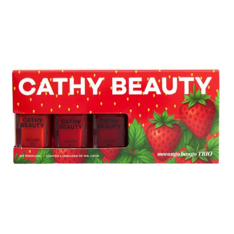 🤩 Trio de Esmaltes Cathy Beauty Morango Bango 🤩